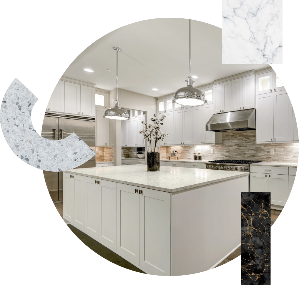 يُستخدم لأسطح العمل لجودته غير المسامية، ومقاومته العالية للحرارة والخدش والبقع، مما يجعله عملياً ومثالياً لبيئة المطبخ.